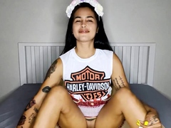 Big booty Asian teen sucking big dildo